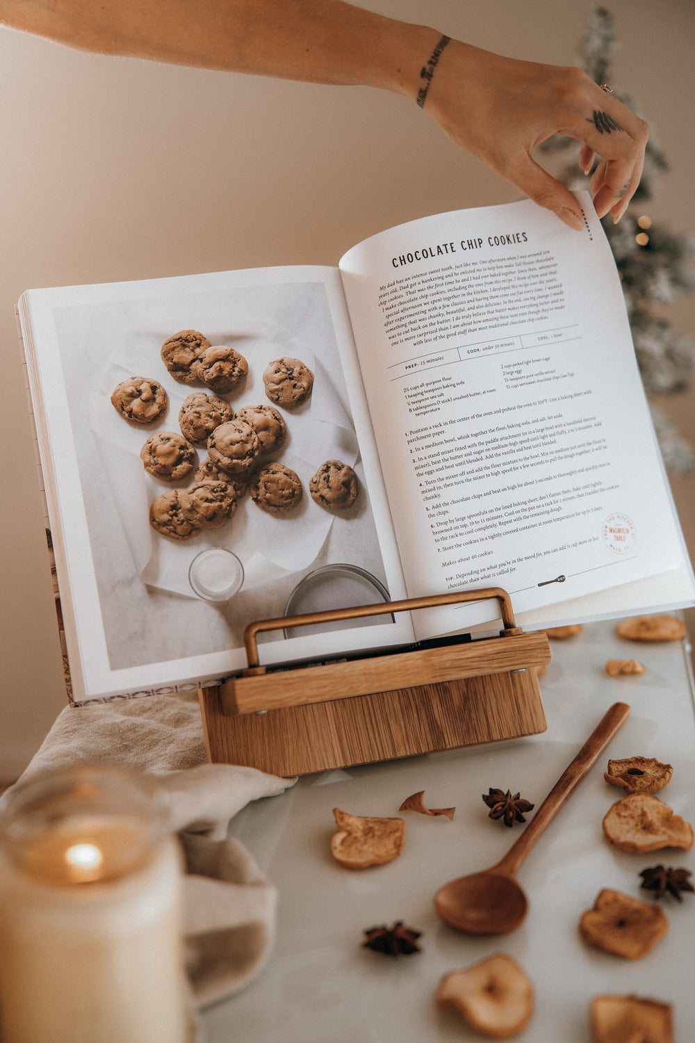 Our handcrafted wooden cookbook stand is a timeless addition to your kitchen that blends beauty and practicality. Crafted from solid white oak and accented with stunning brass hardware, this stand has vintage charm while providing a sturdy, stylish way to keep your favorite recipes within reach. This stand will enhance the everyday function of your kitchen and bring an added sense of joy as you’re cooking!